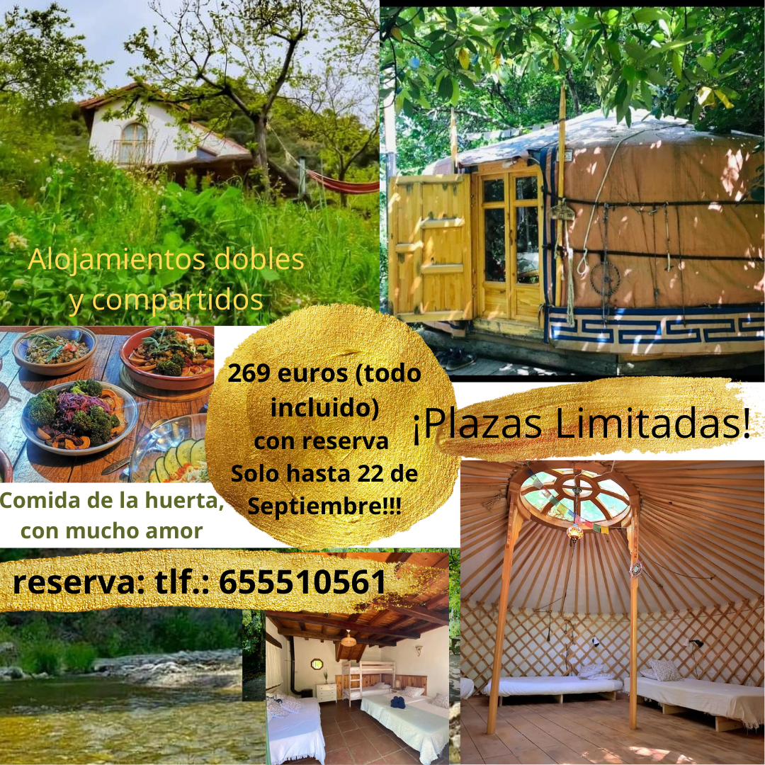En un entorno idílico y creado con mucho Amor de Ecoaldea LOS GUINDALES, nos cuidaran las manos y corazones comprometidos con el servicio de la madre. La comida es muy cuidada, consciente, alcalina, ecológica y de la huerta.